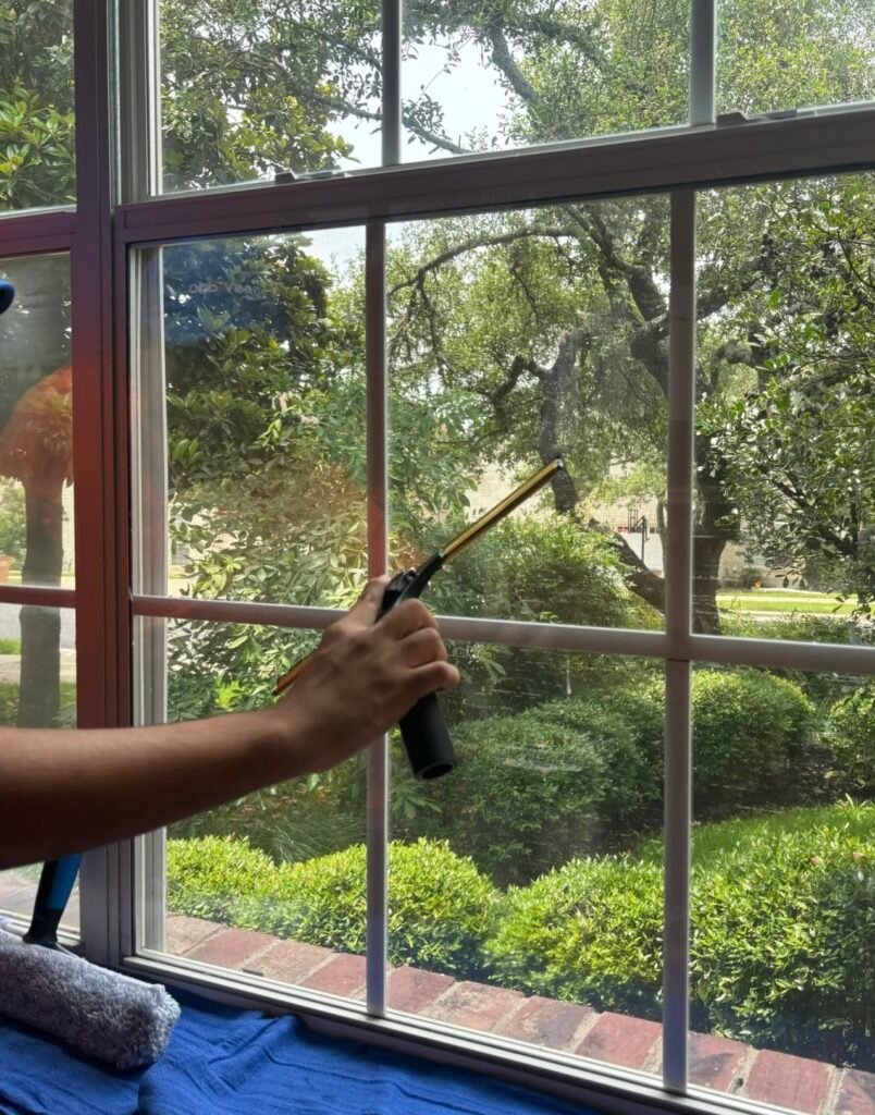 Crystal-clear results using a water-fed pole system with 100% purified water — no ladders, no chemicals, just spotless shine.